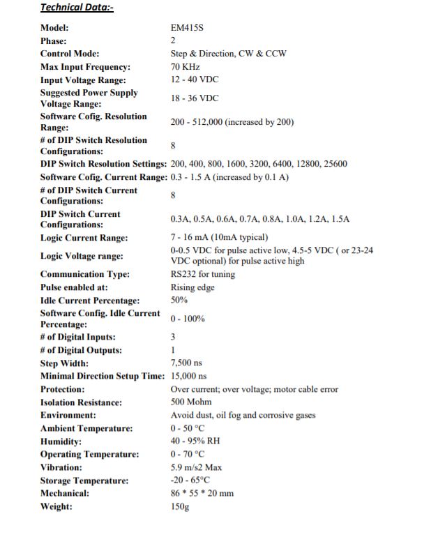 Features of Leadshine Digital Stepper Drive EM-S Series - EM415S: